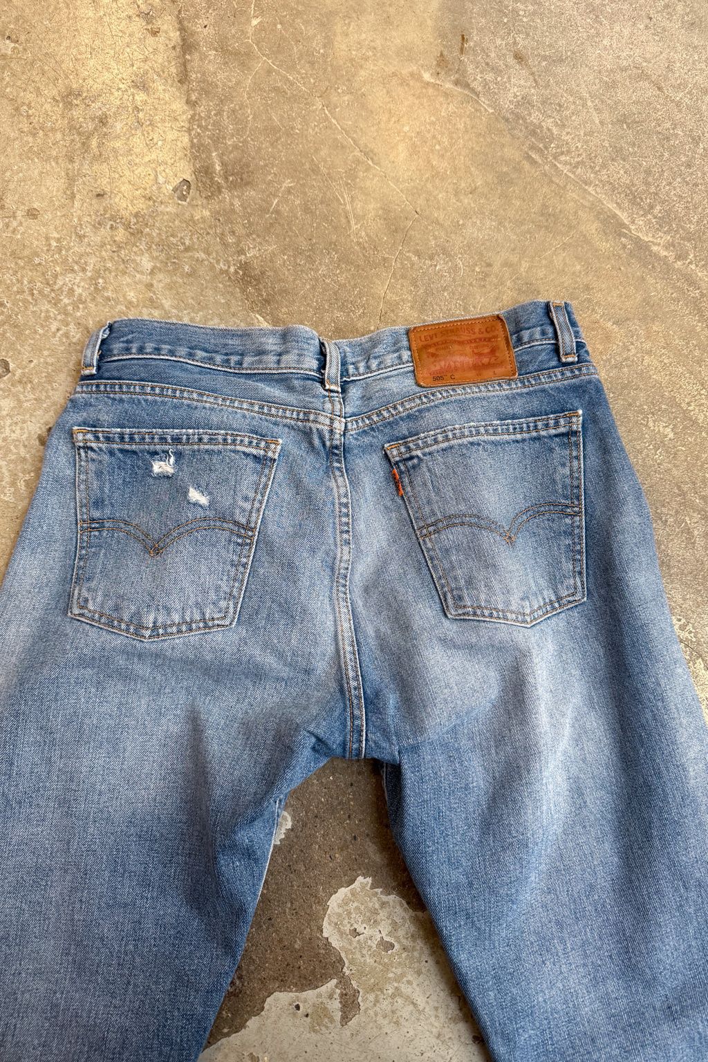 Horší stav materiálu u lemu nohavic a u kapes